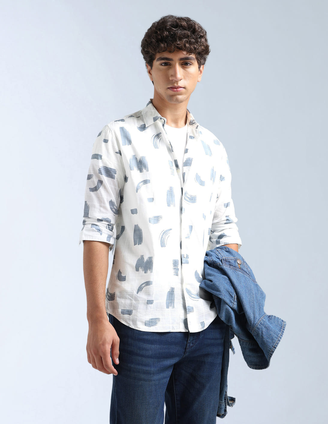 Abstract Printed With Textured Checked Slim Fit Shirt