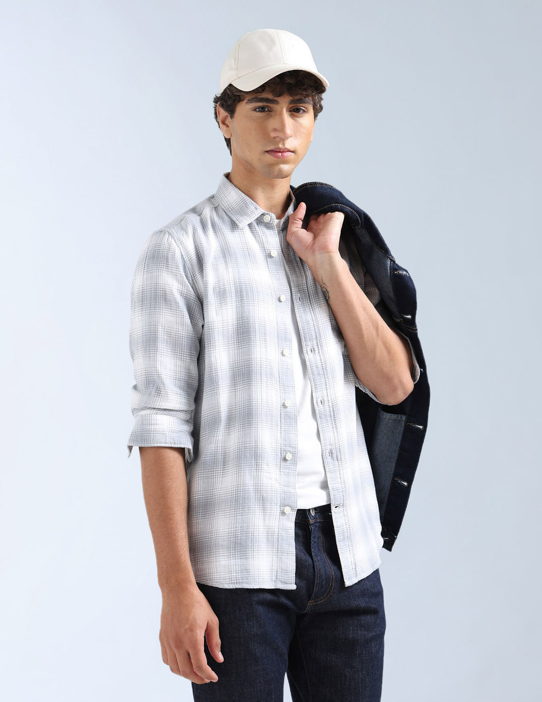 Plaid Checked Herringbone Shirt