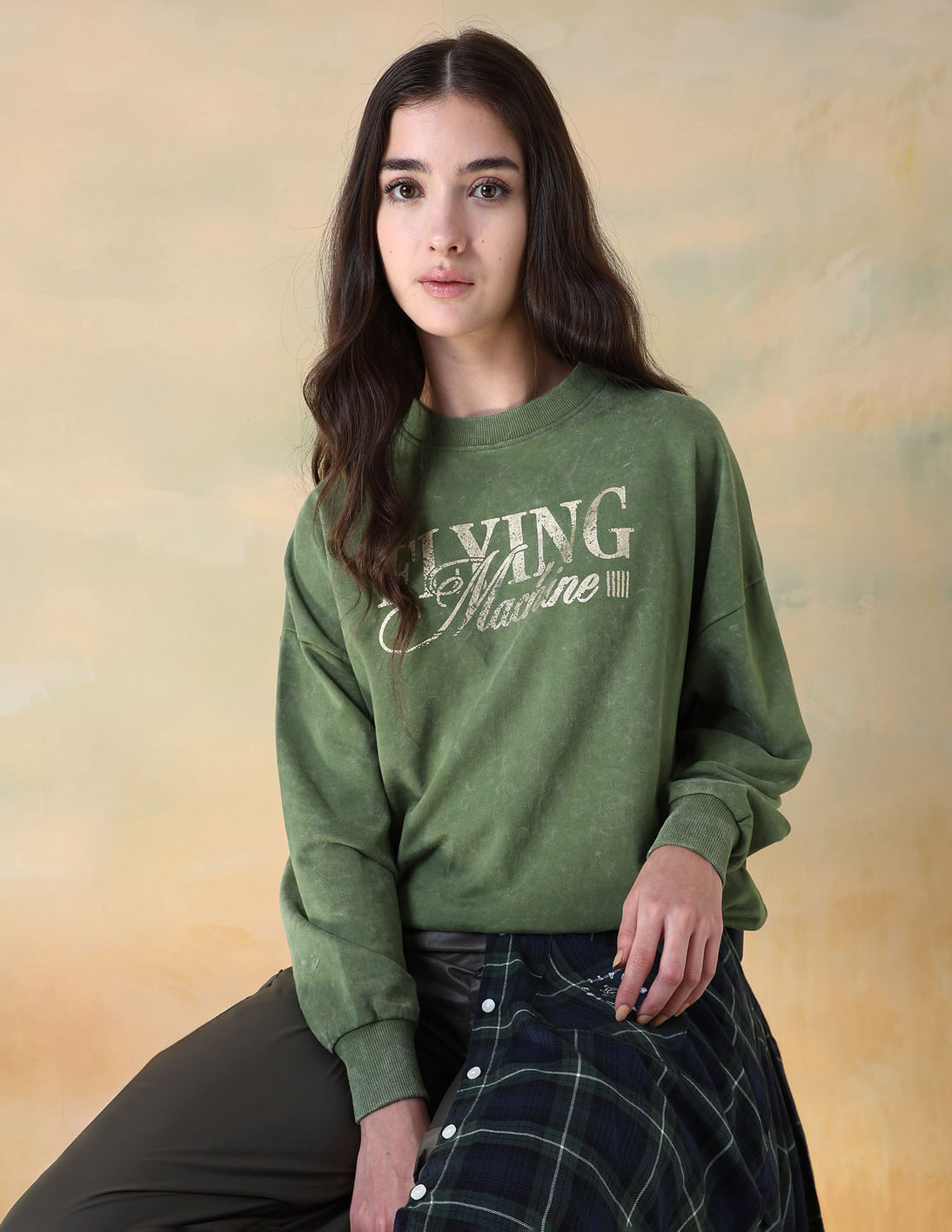 Drop Shoulder Fit Typography Printed Sweatshirt