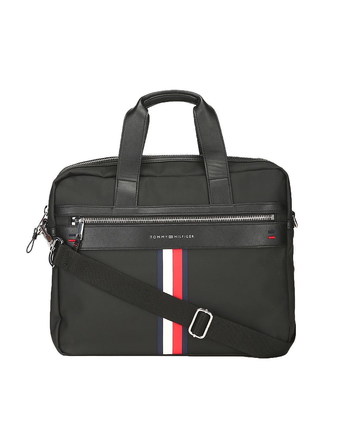 Women Black Elevated Brand Tape Laptop Bag